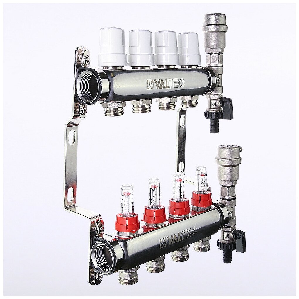 Air vent, drain valve, brackets, flow meter, drain cock, thermostatic valve