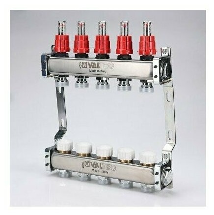 Manifold block 1, 4 outlets x 3/4 euro cone with control valves and VALTEC flow meters