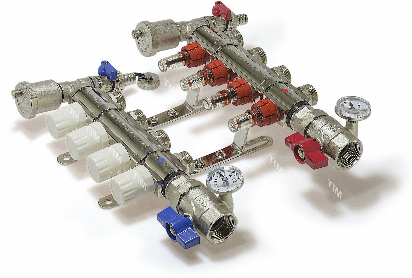 Manifold group Tim KA004 1, 4 outlets, flow meter, air vent, drain cock, thermometer