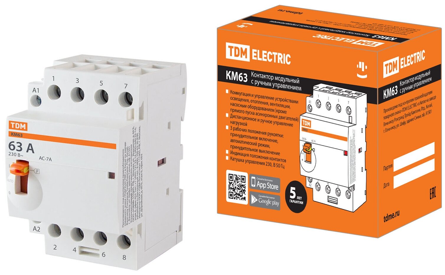 Type: modular contactor, rated operating current: 63 A, rated. slave. voltage max: 230 V, control circuit voltage min: 230 V, Number of normally open NO power contacts: 4, control circuit voltage type: A