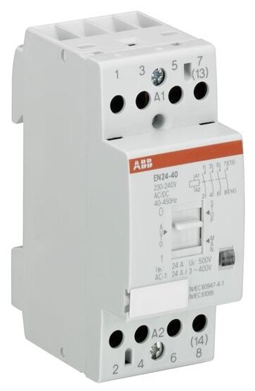 Description: Type: modular contactor, rated operating current: 24 A, rated. slave. voltage min: 220 V, control circuit voltage min: 24 V, operating voltage type. voltage: AC/DC AC/DC, voltage type control circuit: AC/DC non