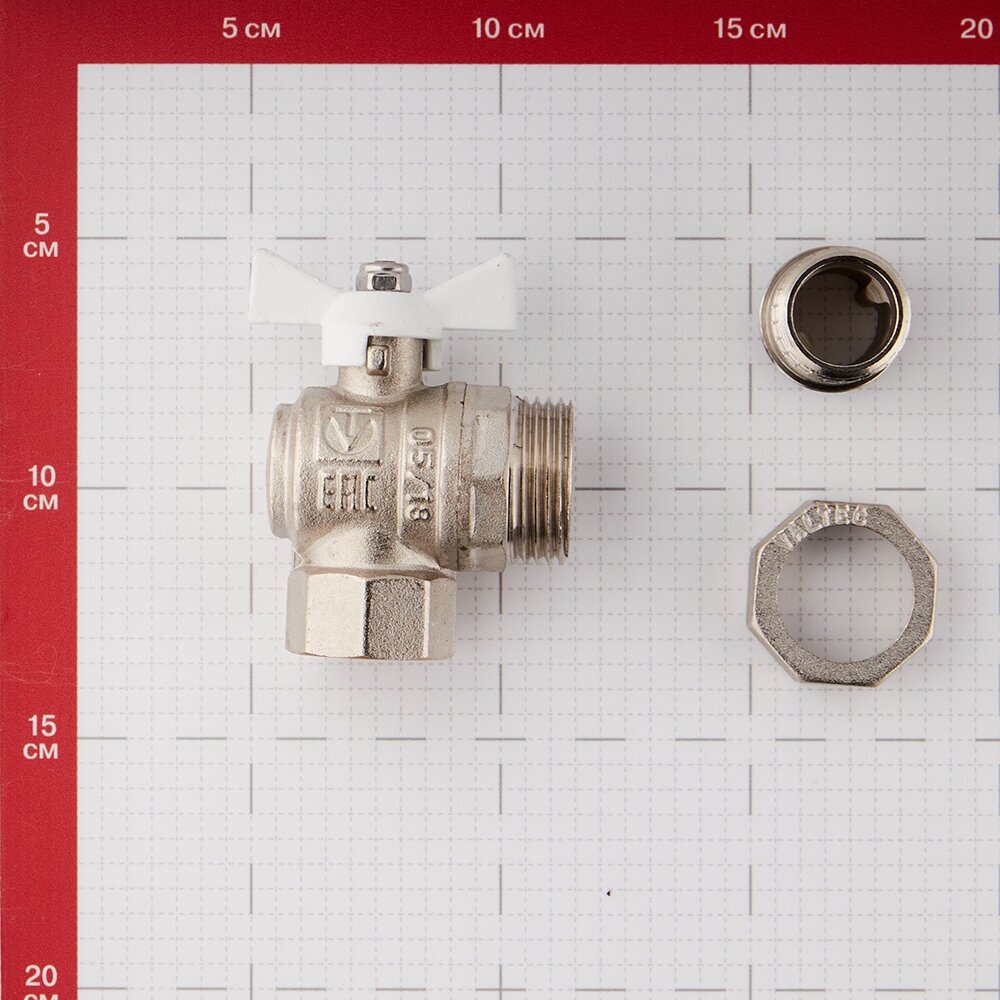 Type: angular, design: full bore, purpose: for water, control: butterfly handle, nominal pressure: PN 40, features: union nut, minimum temperature: -20 °C, maximum temperature: 120 °C