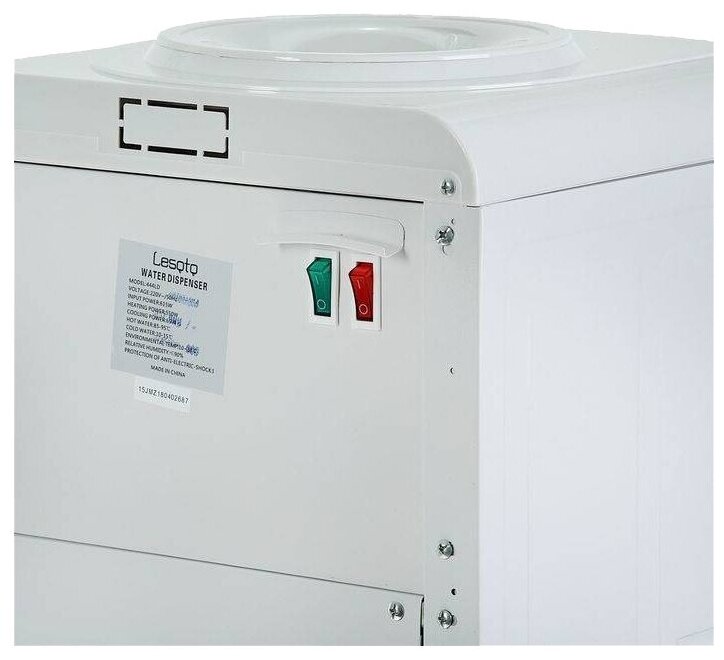 Heating capacity 7 l/h; cooling capacity 0.7 l/h; removable tray for collecting drops; height is indicated without bottle