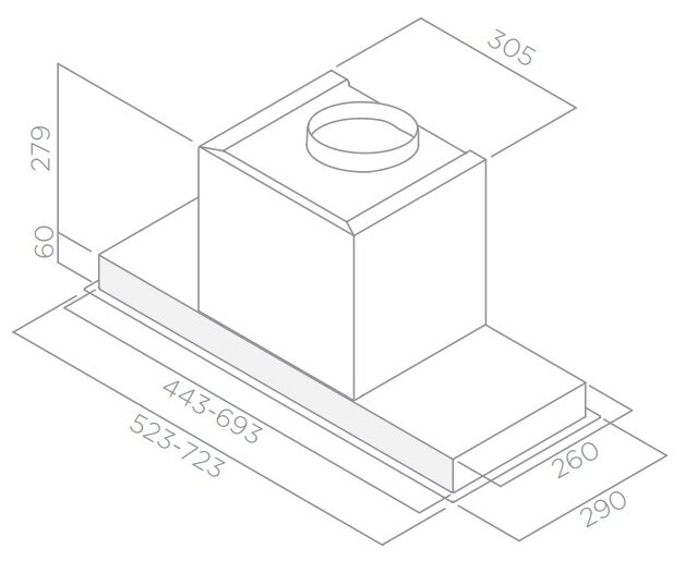 Form factor: built-in, width: 60 cm, depth: 29 cm, operating modes: drain / circulation, installation location: in a cabinet, maximum productivity: 1200 m³/hour, filter: grease, control type: electronic, lighting type: s