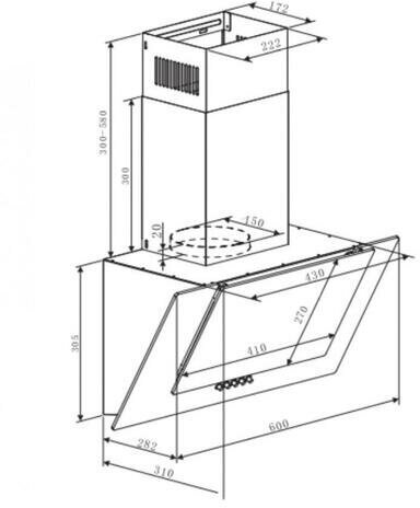 Form factor: built-in, width: 52 cm, depth: 29.60 cm, operating modes: drain / circulation, installation location: in a cabinet, maximum productivity: 750 m³/hour, filter: grease, control type: mechanical, lighting type