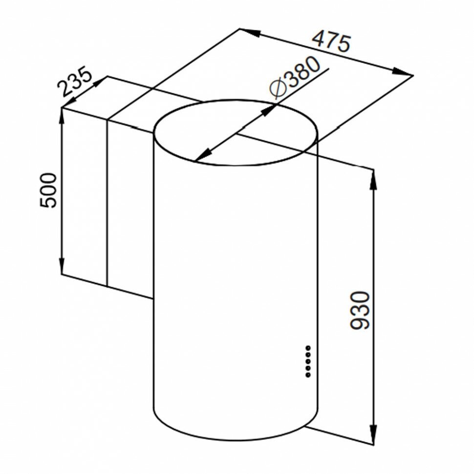 Form factor: dome, width: 38 cm, depth: 47.50 cm, operating modes: exhaust / circulation, maximum productivity: 1000 m³/hour, installation type: wall-mounted, filter: grease, control type: electronic, lighting type: LED
