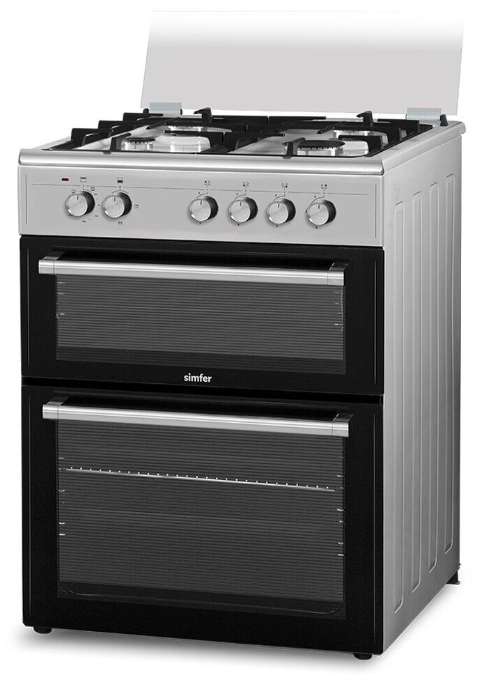 Type: combined, oven type: electric, hob type: gas, work surface material: stainless steel. steel, width: 60 cm, depth: 60 cm, number of burners: 4, electric ignition: hob, convection