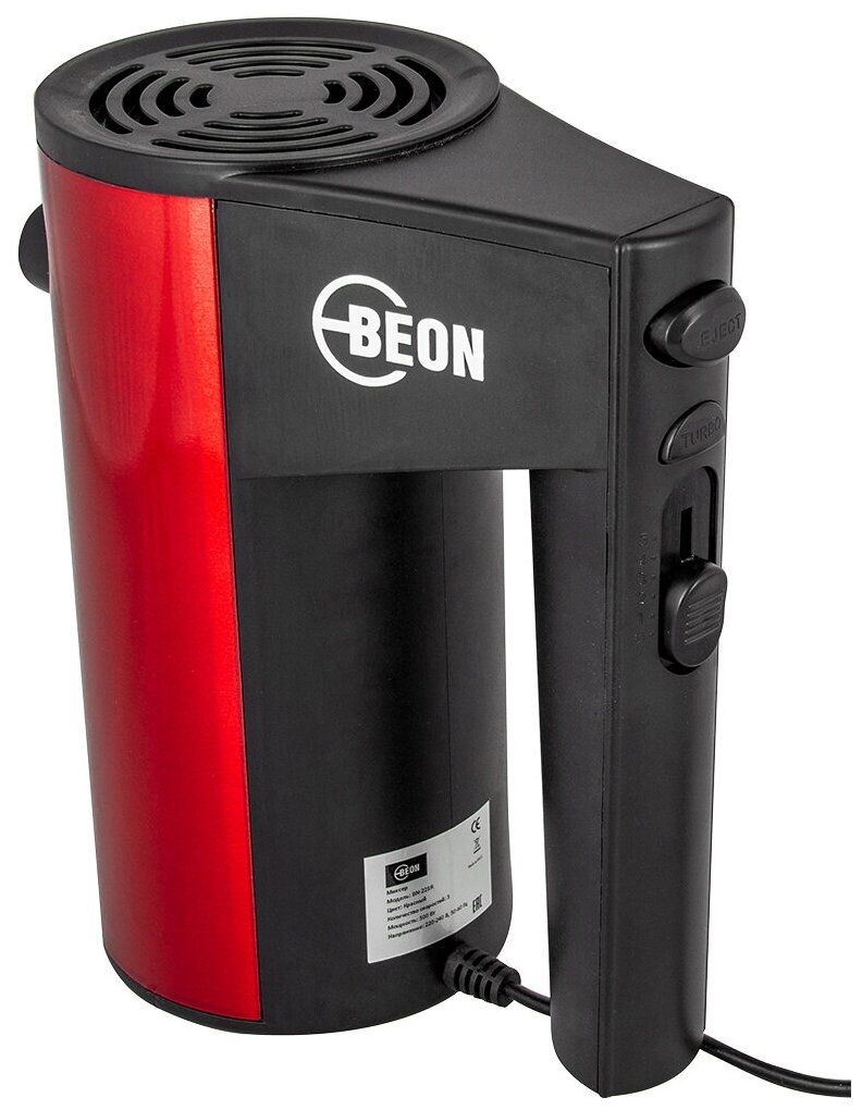 Type: manual, power: 550 W, attachments: whisk, body material: metal, plastic, additional modes: turbo mode, design features: attachment release button, number of speeds: 5