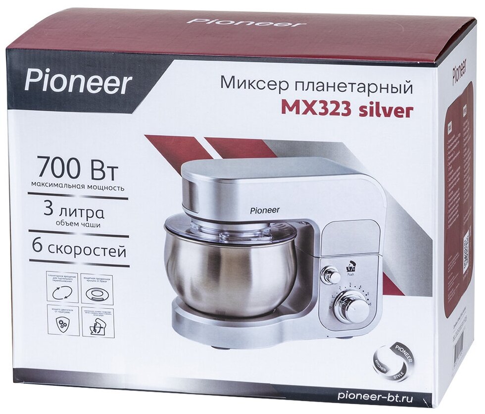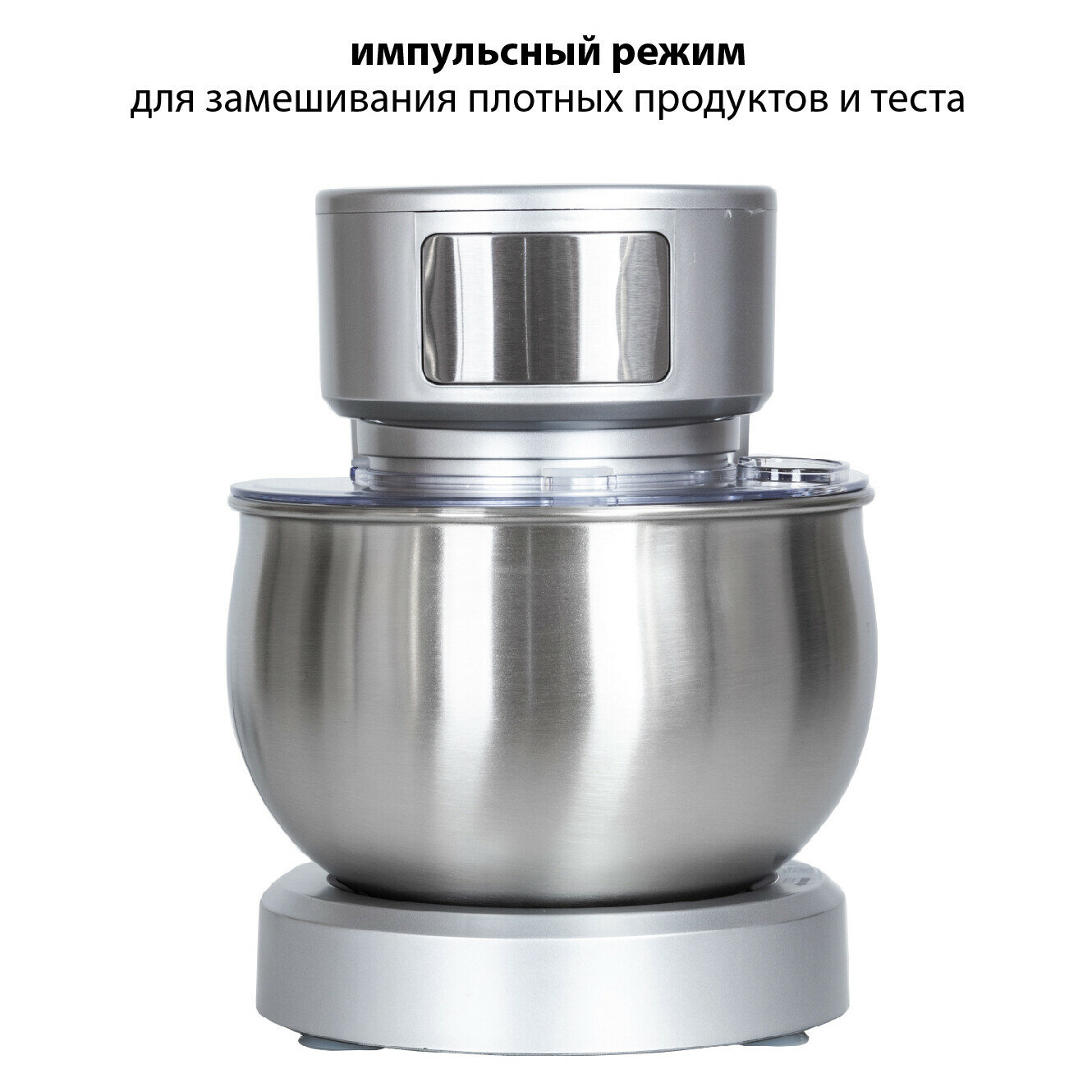 Type: planetary stationary, power: 1100 W, attachments: whisk for whipping, hooks for kneading dough, bowl material: stainless steel, bowl volume: 5 l, body material: plastic, additional modes: pulse �
