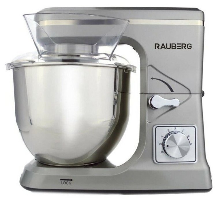 Type: planetary stationary, power: 1100 W, attachments: whisk for whipping, hooks for kneading dough, bowl material: stainless steel, bowl volume: 5 l, body material: plastic, additional modes: pulse �