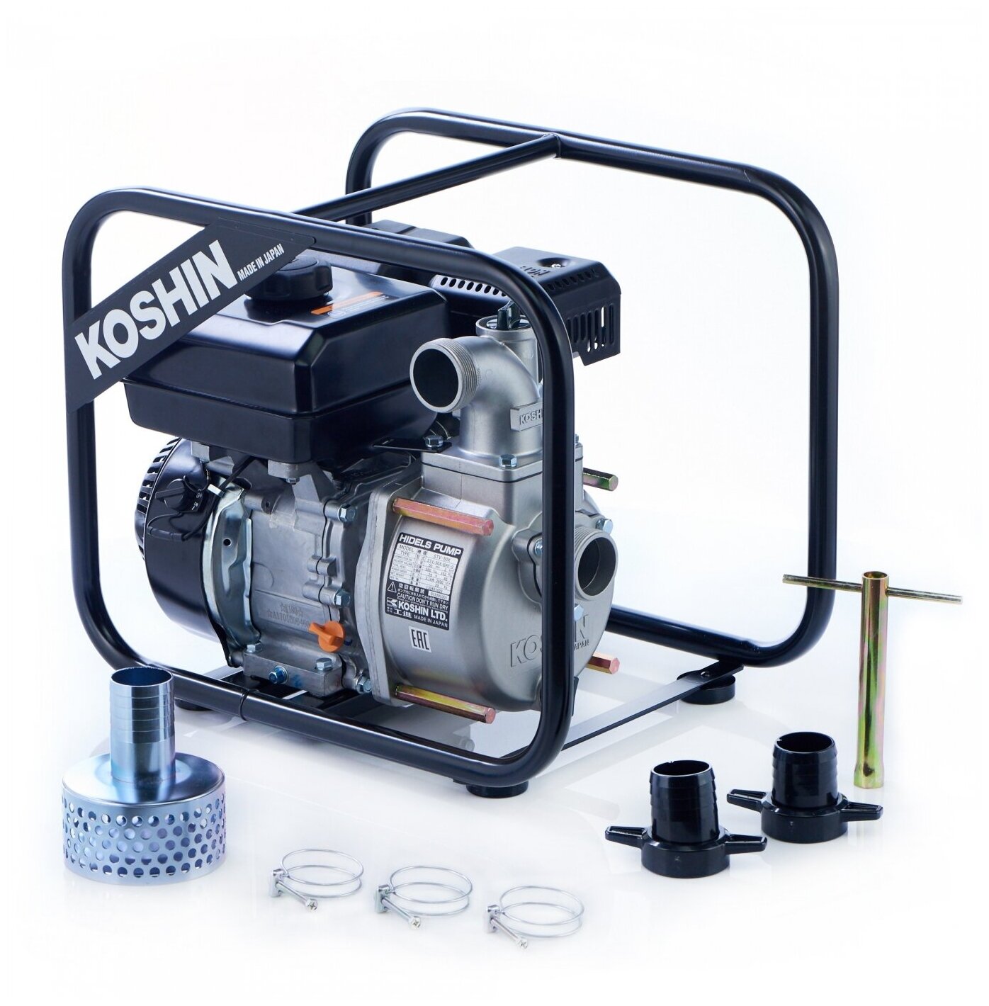 Mesh filter - 1 pc., hose connection pipe - 2 pcs., hose clamp - 3 pcs., spark plug wrench - 1 pc., instruction manual - 1 pc.