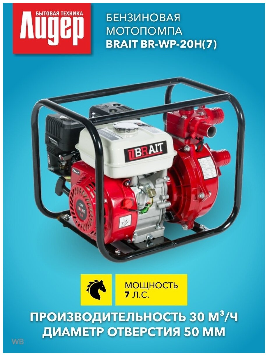 Engine type: gasoline, water quality: clean, lift head: 70 m, maximum performance: 500 l/min, outlet diameter: 50 mm, inlet diameter: 50 mm, engine volume: 170 cm³, stroke rate