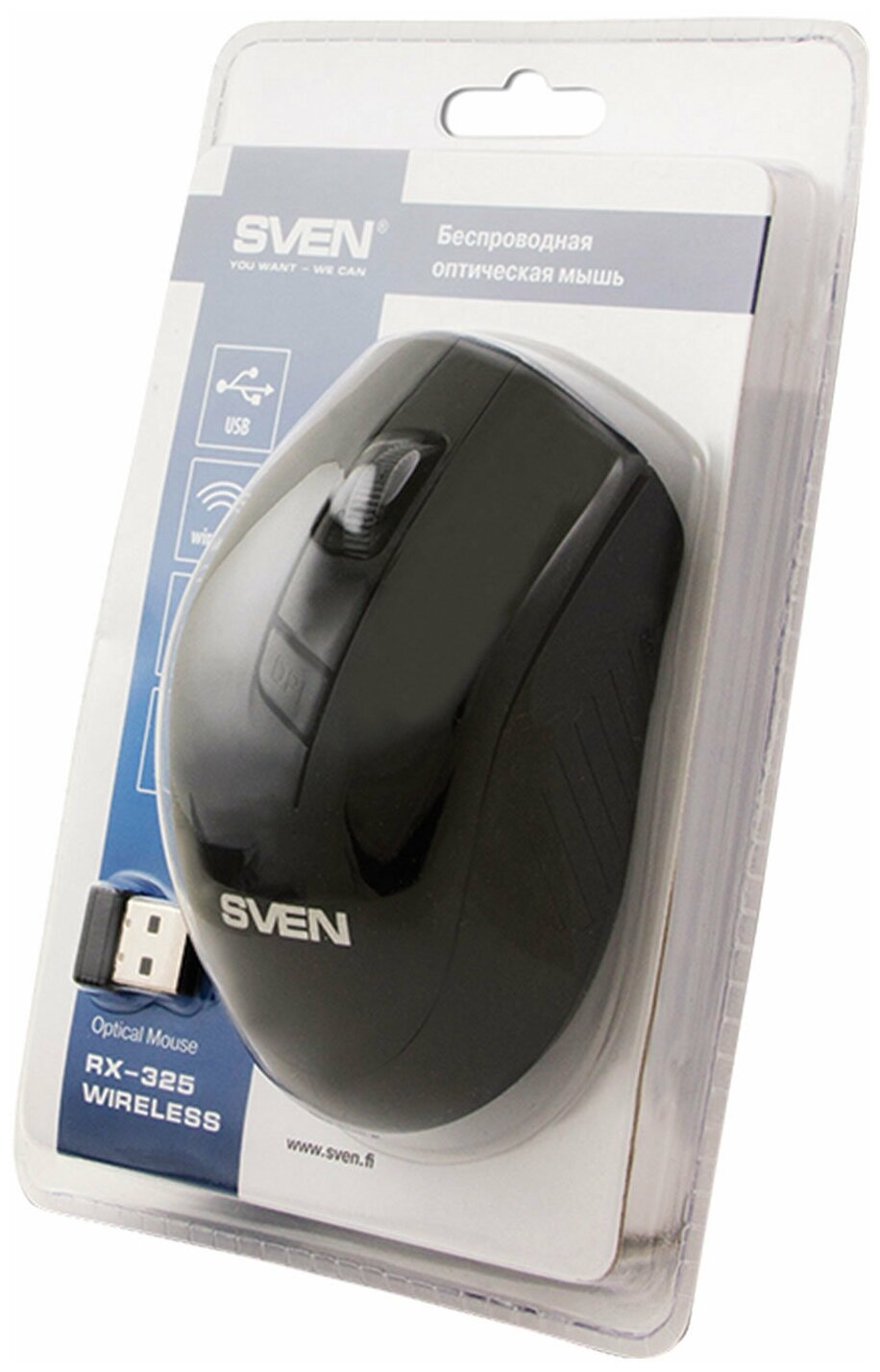 Wireless SVEN RX-325, 3 buttons + 1 wheel-button, optical, black, SV-03200325WB