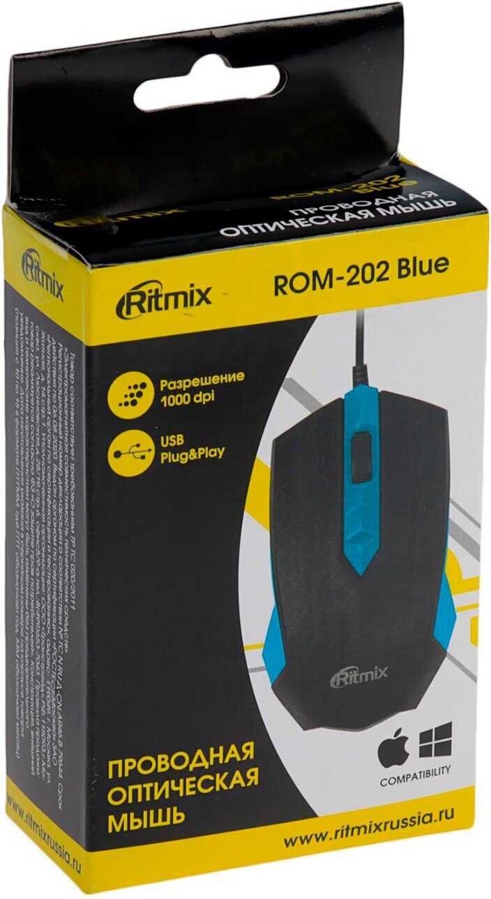 Ritmix ROM-202, wired, optical, 1000 dpi, USB, blue