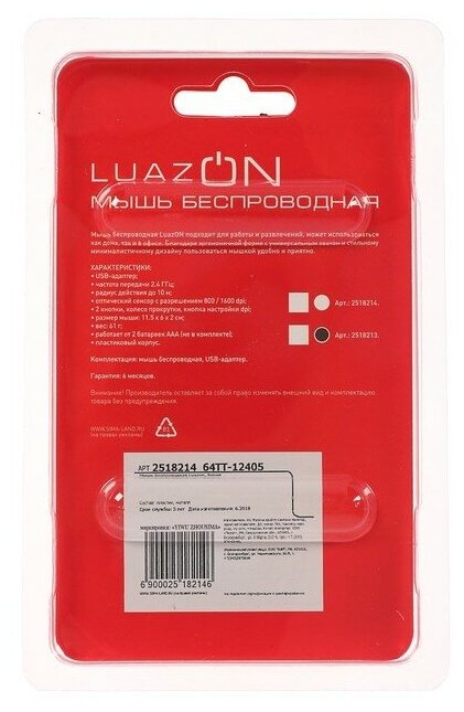 Connection interface: USB Type A, radio channel, design: left-handed, right-handed, operating principle: optical LED, number of keys: 2, optical sensor resolution: 1600 dpi