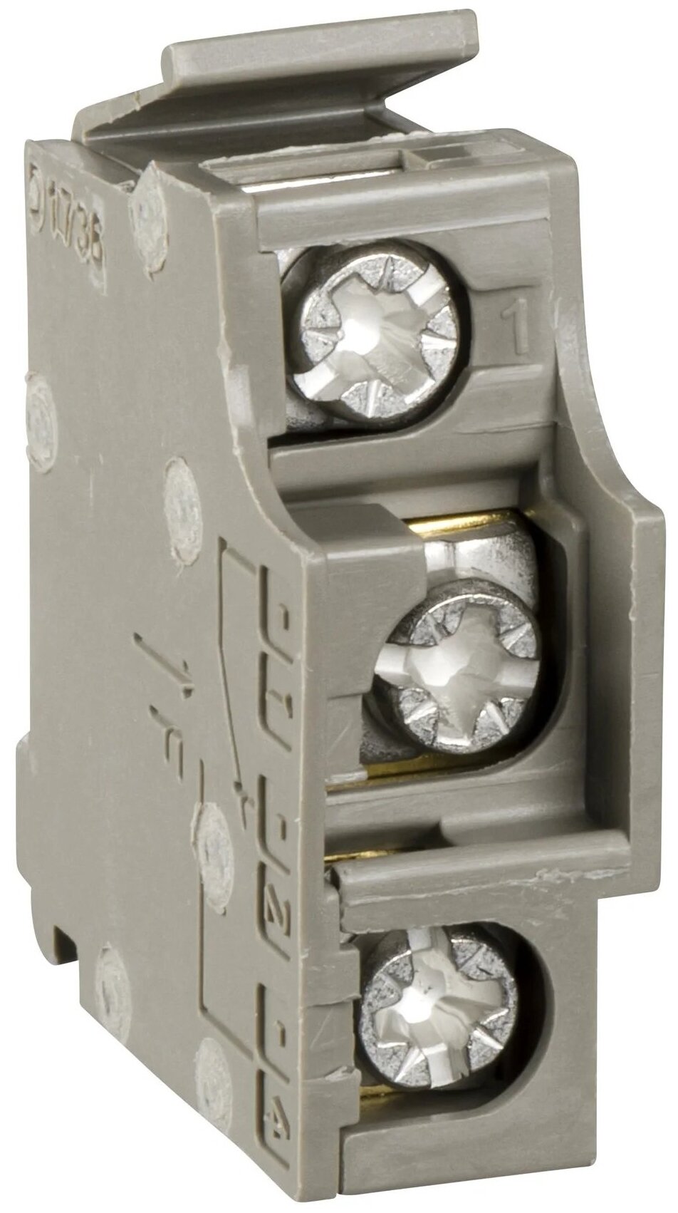 Type: auxiliary contact block, model/version: partly half integrated, connection type: screw connection, height: 70 mm, width: 10 mm, depth: 50 mm, rated current: 5 A, Rated. slave. current Ie at AC-15, 230 V: