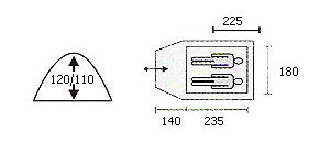 Purpose: camping, number of places: 4, features: UV protection, ventilation holes, wind / snow skirt, inside pockets, inner tent, canopy, taped seams, assembly type: outer frame