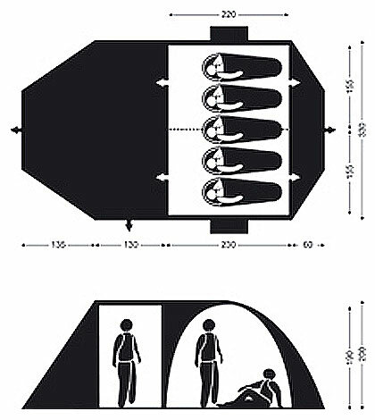 Purpose: camping, number of places: 5, features: UV protection, ventilation holes, inner pockets, inner tent, windows, taped seams, assembly type: outer frame, awning water resistance: 4000 mm w.c. Art.,
