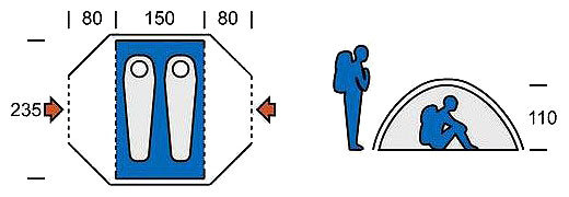 Purpose: camping, number of places: 4, features: UV protection, ventilation holes, wind / snow skirt, inside pockets, inner tent, canopy, taped seams, assembly type: outer frame