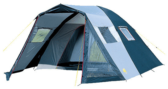 Purpose: camping, number of places: 4, features: UV protection, ventilation holes, wind / snow skirt, inside pockets, inner tent, canopy, taped seams, assembly type: outer frame