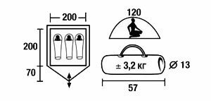Purpose: trekking, number of seats: 3, features: UV protection, ventilation holes, inner tent, taped seams, assembly type: inner frame, awning water resistance: 1000 mm w.c. Art., number of rooms: 1, in