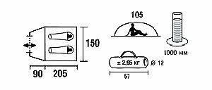 Purpose: trekking, number of seats: 2, features: ventilation holes, fireproof impregnation, assembly type: external frame, awning water resistance: 1000 mm w.c. Art., number of rooms: 1, number of vestibules: 1, weight: 2.95