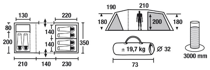| Inner tent dimensionsLxWxH: |