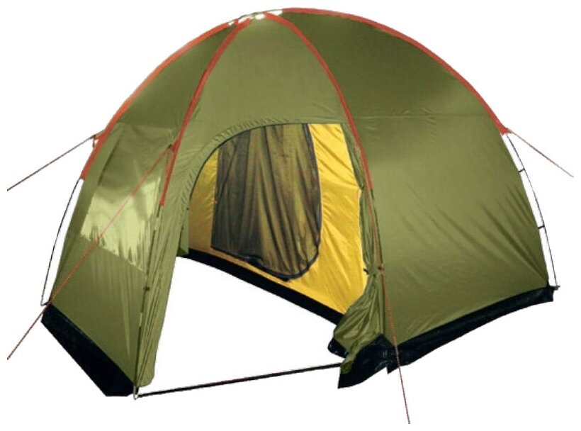 Purpose: camping, number of places: 4, features: UV protection, ventilation holes, wind / snow skirt, inside pockets, inner tent, canopy, taped seams, assembly type: outer frame