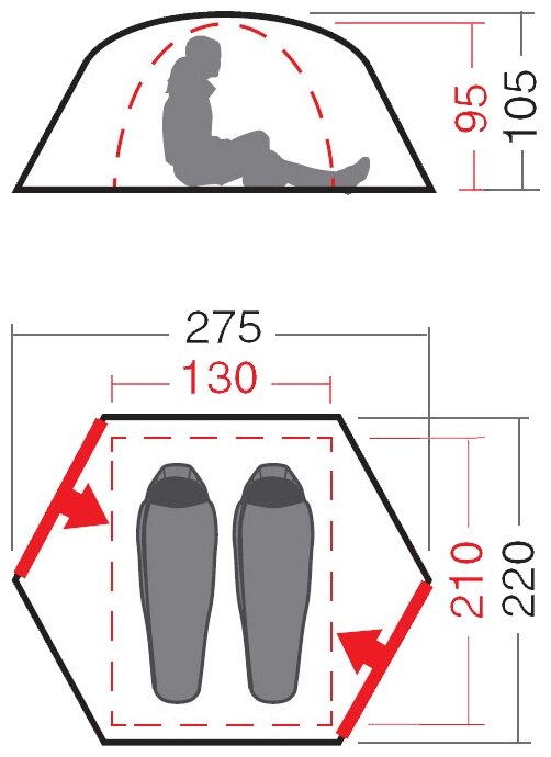 | Inner tent dimensionsLxWxH: |