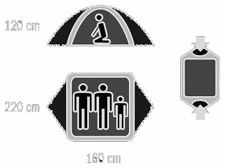 Purpose: extreme, number of seats: 3, features: ventilation holes, inner tent, taped seams, assembly type: outer frame, awning water resistance: 5000 mm w.c. st., number of rooms: 1, number of t