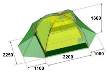 Purpose: camping, number of places: 4, features: UV protection, ventilation holes, inner tent, reinforced corners, awning water resistance: 3000 mm w.c. Art., number of rooms: 1, number of vestibules: 2, weight: 5.60 kg,
