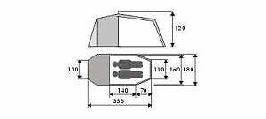 Purpose: camping, number of places: 4, features: UV protection, ventilation holes, wind / snow skirt, inside pockets, inner tent, canopy, taped seams, assembly type: outer frame