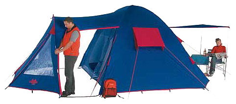 Purpose: camping, number of places: 4, features: UV protection, ventilation holes, wind / snow skirt, inner tent, canopy, windows, taped seams, build type: external frame, water resistant
