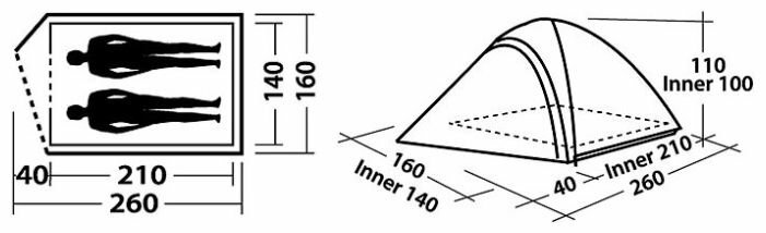 Purpose: camping, number of places: 4, features: UV protection, ventilation holes, wind / snow skirt, inside pockets, inner tent, canopy, taped seams, assembly type: outer frame
