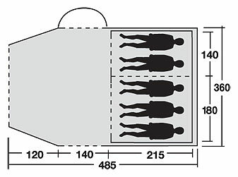 Purpose: camping, number of places: 5, features: ventilation holes, wind / snow skirt, inside pockets, inner tent, fireproof treatment, windows, taped seams, assembly type: out