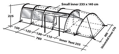 Purpose: camping, number of places: 4, features: UV protection, ventilation holes, wind / snow skirt, inside pockets, inner tent, canopy, taped seams, assembly type: outer frame