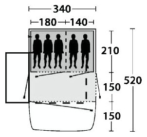 Purpose: camping, number of places: 4, features: UV protection, ventilation holes, wind / snow skirt, inside pockets, inner tent, canopy, taped seams, assembly type: outer frame
