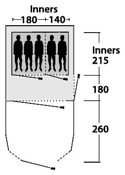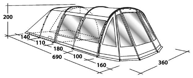 Purpose: camping, number of places: 4, features: UV protection, ventilation holes, wind / snow skirt, inside pockets, inner tent, canopy, taped seams, assembly type: outer frame