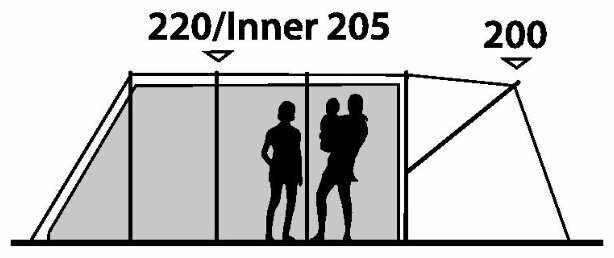 Purpose: camping, number of places: 5, features: ventilation holes, wind / snow skirt, inside pockets, inner tent, canopy, windows, taped seams, reinforced corners, assembly type: out