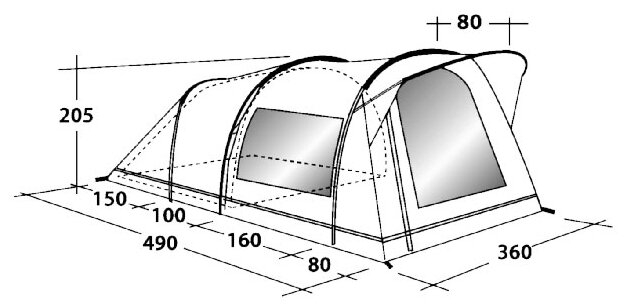 Purpose: camping, number of places: 4, features: UV protection, ventilation holes, wind / snow skirt, inside pockets, inner tent, canopy, taped seams, assembly type: outer frame