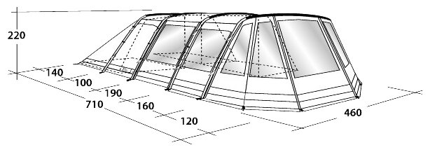 Bedroom sizes 215*140cm and 190*140cm; arches packing size 22876cm; pole weight 17.9kg, tent weight 27.6kg; repair kit