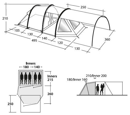 | Inner tent dimensionsLxWxH: |