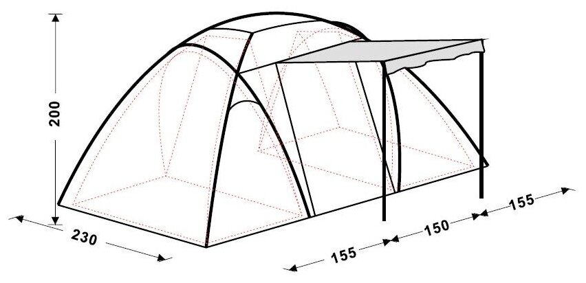 Purpose: camping, number of places: 4, features: ventilation holes, inner pockets, inner tent, canopy, taped seams, assembly type: outer frame, tent water resistance: 2000 mm w.c. Art., Quantity