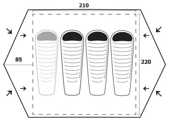 Purpose: trekking, number of places: 4, features: ventilation holes, inner tent, taped seams, assembly type: inner frame, awning water resistance: 4000 mm w.c. Art., number of rooms: 1, number