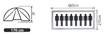 Purpose: camping, number of seats: 7 or more, features: ventilation holes, inner pockets, inner tent, taped seams, assembly type: inner frame, awning water resistance: 2000 mm w.c. Art., if