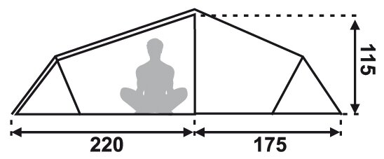 Purpose: camping, number of places: 4, features: UV protection, ventilation holes, wind / snow skirt, inside pockets, inner tent, canopy, taped seams, assembly type: outer frame