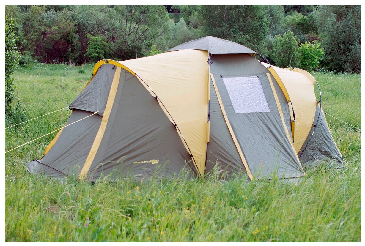 Purpose: camping, number of places: 4, features: UV protection, ventilation holes, wind / snow skirt, inside pockets, inner tent, canopy, taped seams, assembly type: outer frame