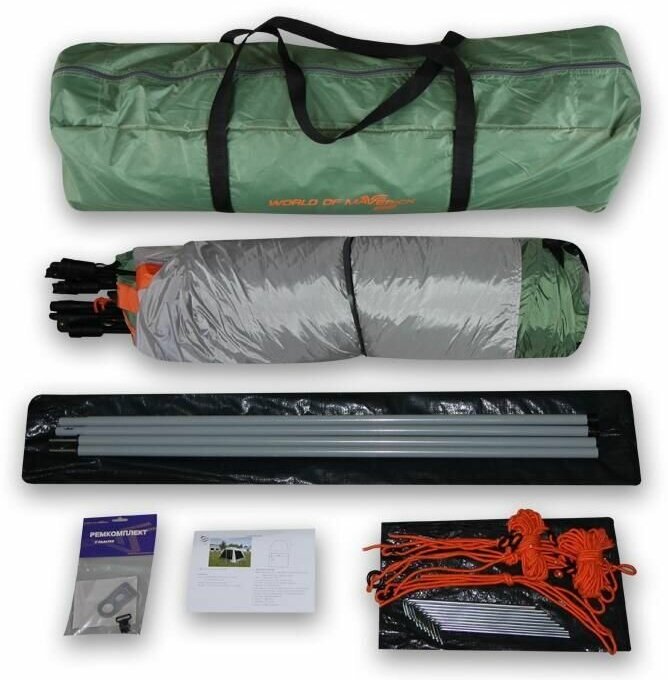 Removable floor; rack steel 19 mm; water resistance of the awning: 5000 mm of water. Art.; packed height: 21 cm; tarpaulin material name: 750D Taffeta 185T PU