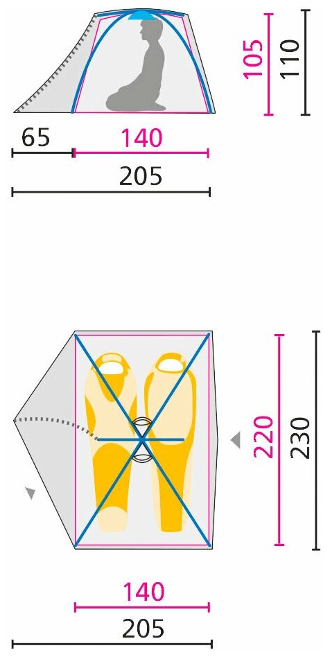 Purpose: camping, number of places: 4, features: UV protection, ventilation holes, wind / snow skirt, inside pockets, inner tent, canopy, taped seams, assembly type: outer frame