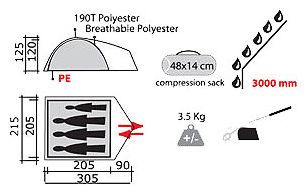 Purpose: trekking, number of places: 4, features: air vents, inner tent, taped seams, build type: inner frame, tent water resistance: 3000 mm w.c. Art., number of rooms: 1, number